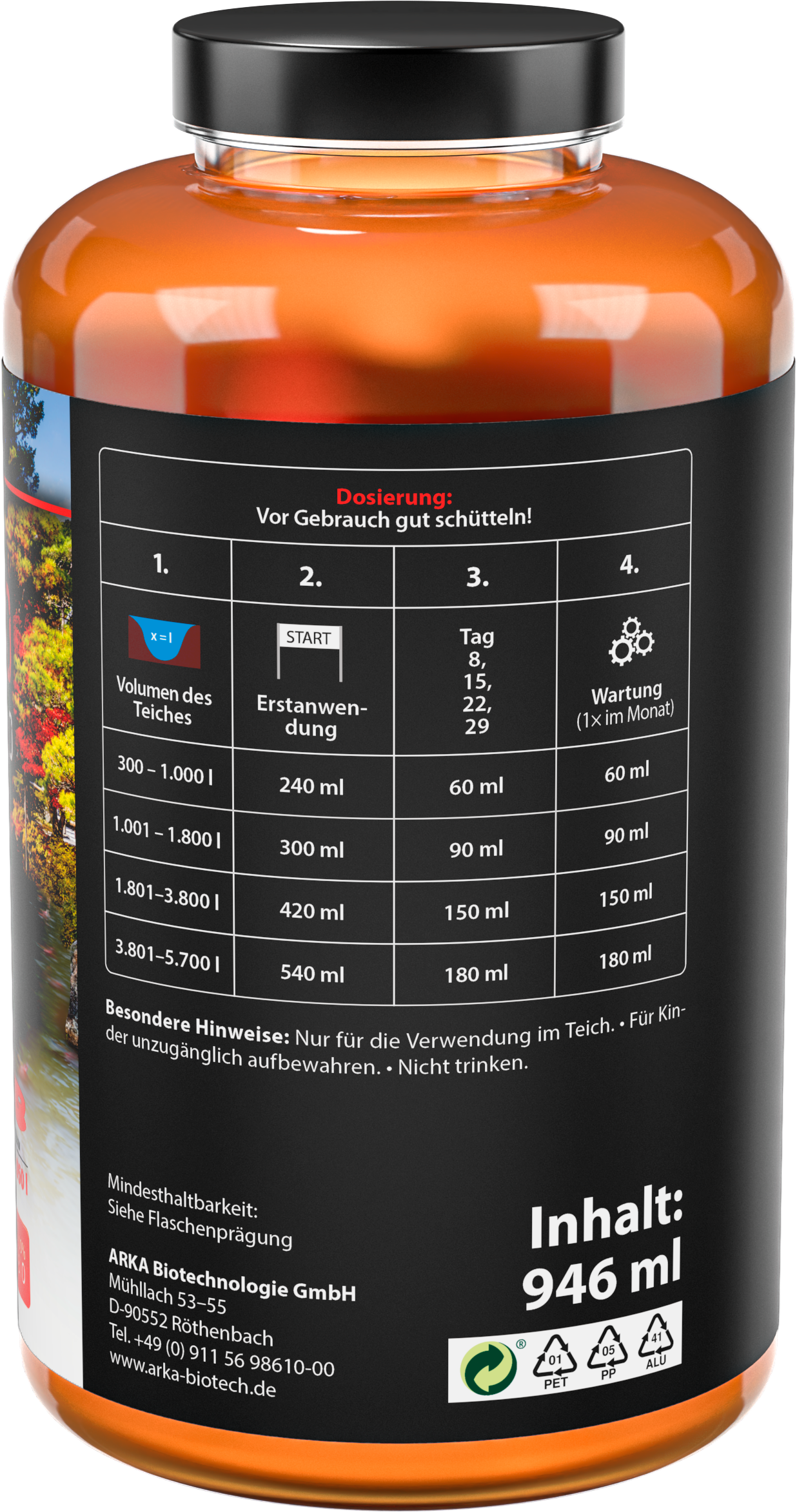 Thanks to beneficial bacterial cultures, Pond Special Blend increases the activity of natural pond biology: the result is clear water and lush vegetation. The hard-working bacterial strains break down organic substances and thus reduce cleaning and maintenance costs. The 100 percent biological preparation initially gives off a slight sulfuric odour, but this quickly disappears. It can be used from a water temperature of 7°C, the pH value of the water has no influence on its effectiveness.