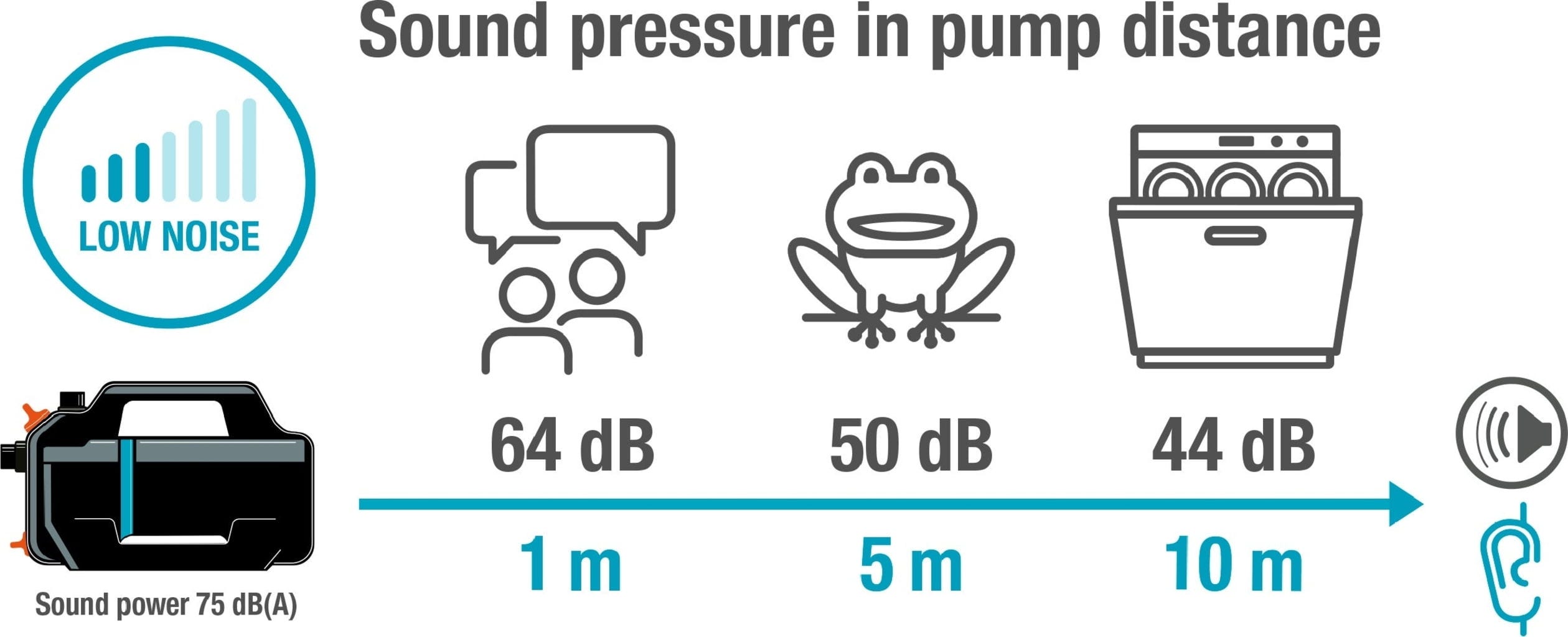 - Silent Technology: Extremely low-noise with only 44 dB at a distance of 10 m.