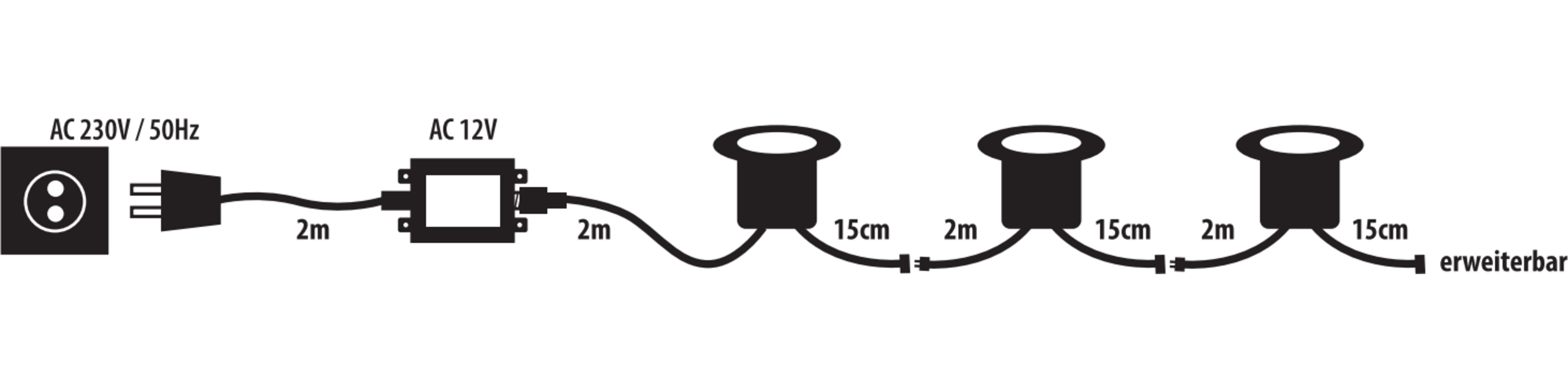 HEISSNER In-Ground Smart Light Spotlights create an exclusive atmosphere for pools, ponds, and patios thanks to their versatile design, suitable for both above-ground and underwater use. Each light features a two-metre connection cable with an integrated expansion option, allowing you to customise and scale your system by simply adding up the total wattage and choosing a transformer with a suitable rating.