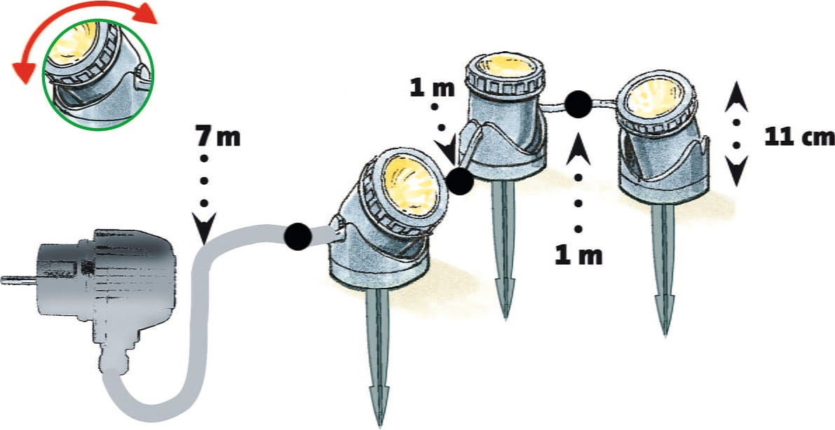 3x pond lights with 7 m connection cable between transformer & lamp