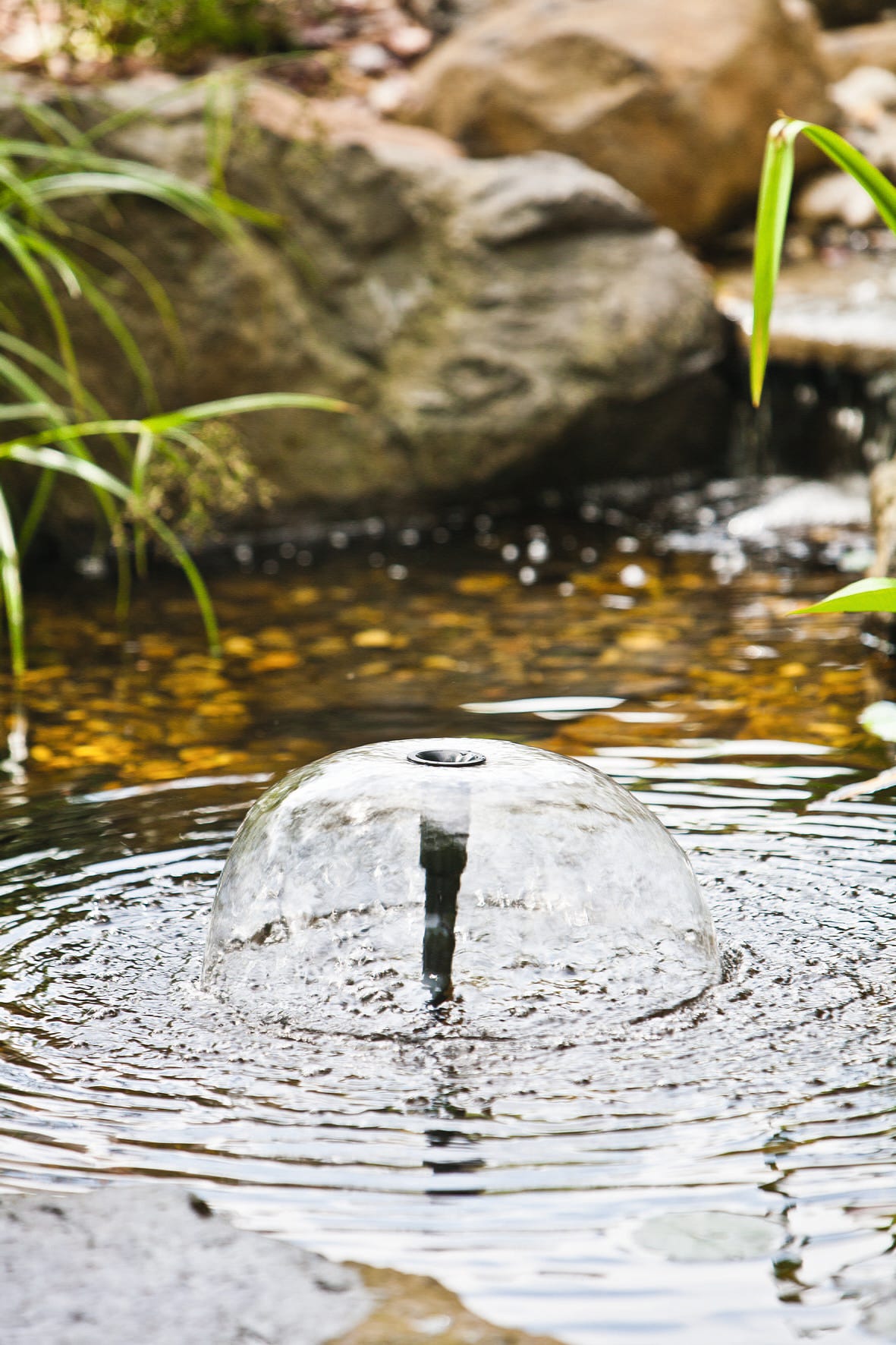 This HEISSNER solar pond pump enables decorative water features without the need for an external power connection and is ideal for water features, feature stones and small streams. The system operates exclusively on solar energy generated via an external photovoltaic panel. The set includes a multi-part nozzle set for varied water displays, which also make an important contribution to water quality: continuous circulation enriches the pond with vital oxygen, which is particularly beneficial on warm, sunny days.