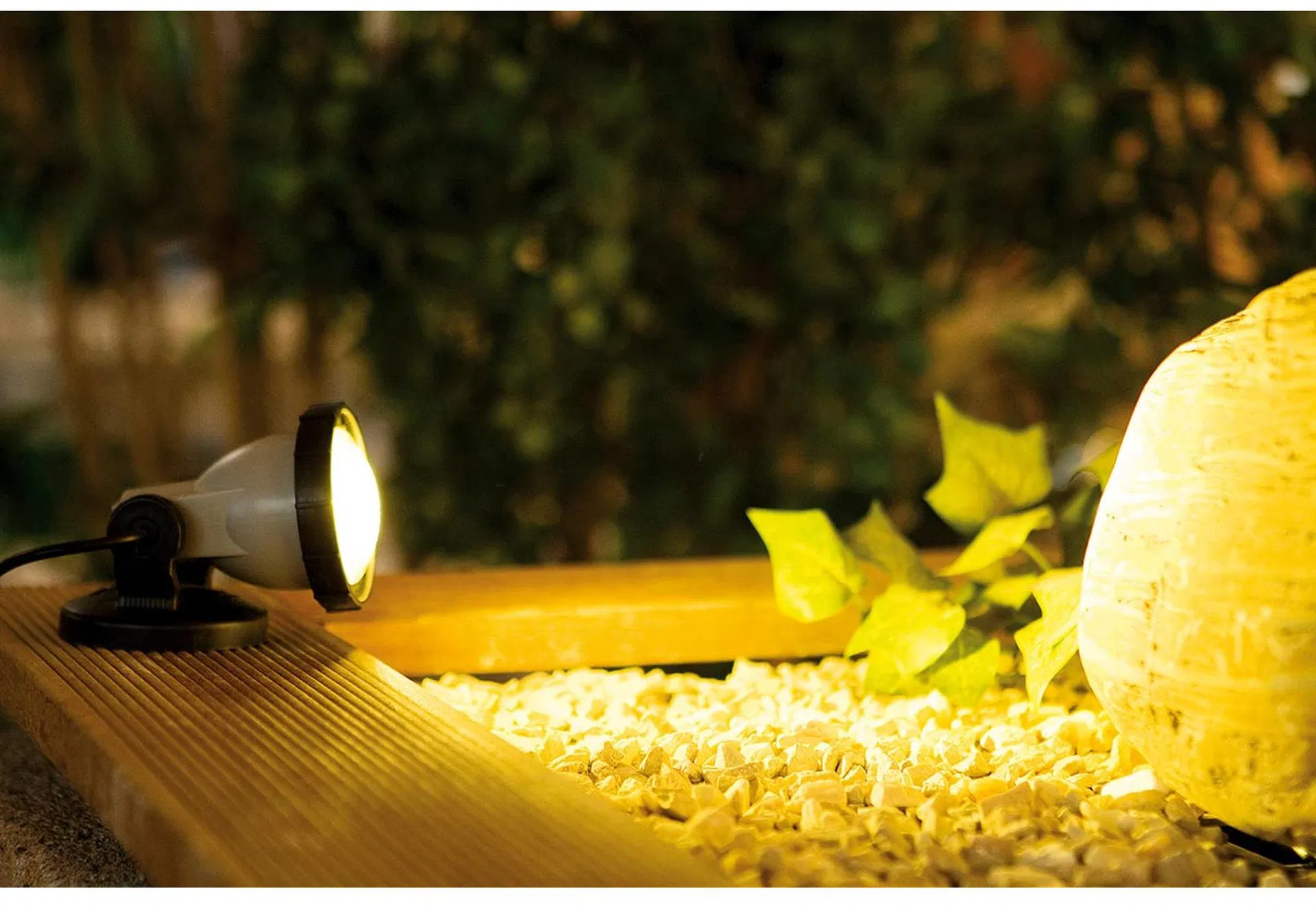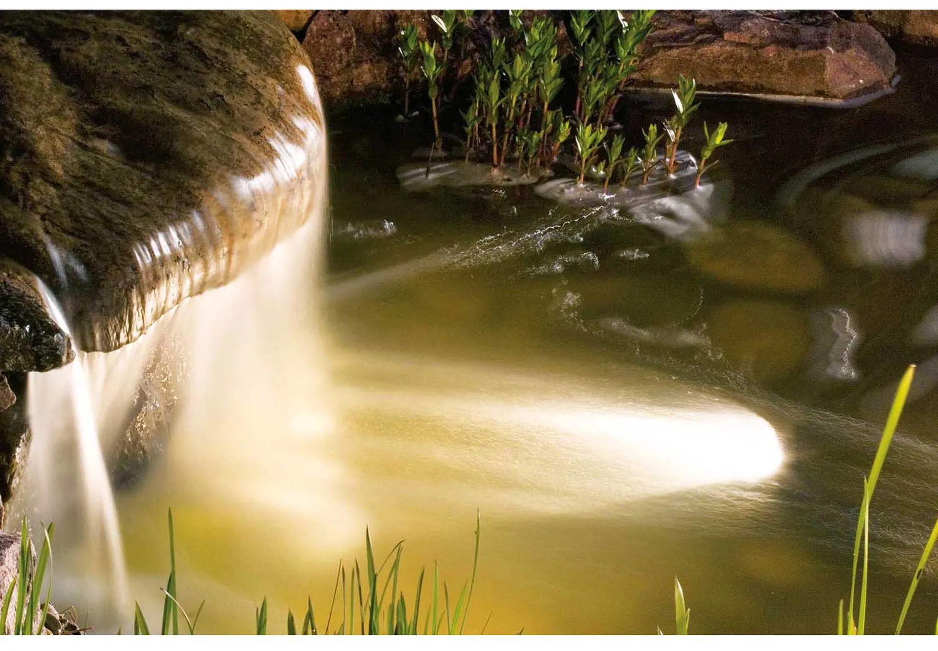This HEISSNER Underwater LED Spotlight with transformer is an energy-efficient solution for creating atmospheric lighting in garden and pond landscapes. Custom lighting effects can be achived thanks to the warm white light colour and included colour discs. The outdoor safety transformer and generous cable length allow for flexible positioning and a safe power supply throughout the garden.