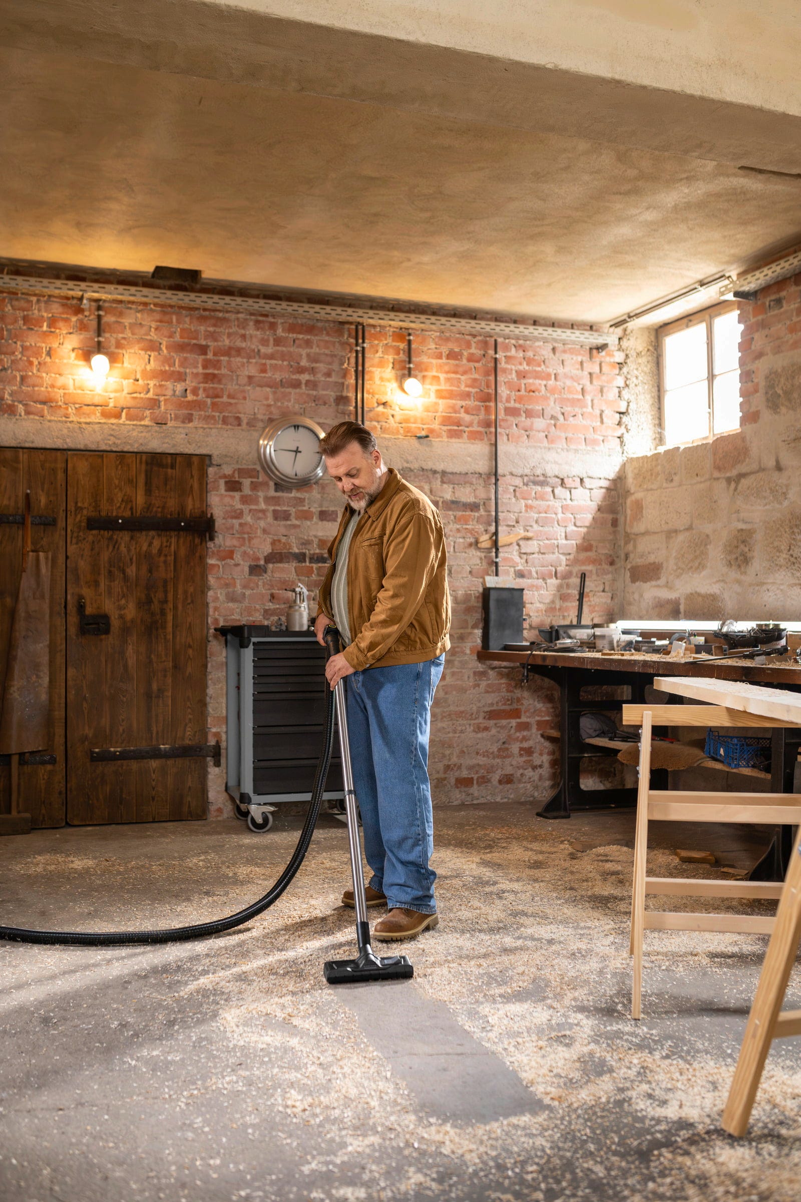 Whether you’re clearing plaster dust and rubble from a renovation site, managing wood shavings and metal filings in the workshop, or tackling garage and cellar floors, this vacuum delivers unmatched endurance. The high-capacity tank and drain screw make it just as effective at clearing up water leaks or damp messes as it is at professional car detailing, allowing you to work longer without frequent emptying.