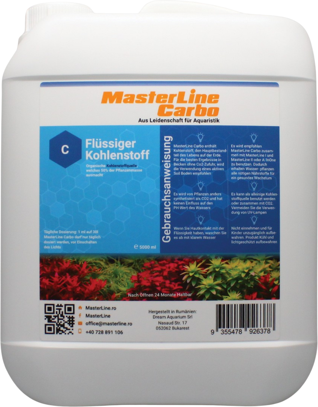 Carbon is one of the most important nutrients for aquatic plants. A sufficient supply is absolutely necessary to maintain the vitality of the plants and to inhibit the growth of algae. MasterLine Carbo is a liquid, organic carbon that does not affect the pH of the water. Plants absorb the nutrients of the liquid carbon particularly quickly, a daily dosage is recommended. MasterLine Carbo is suitable as the sole carbon source or in combination with conventional CO2 addition.