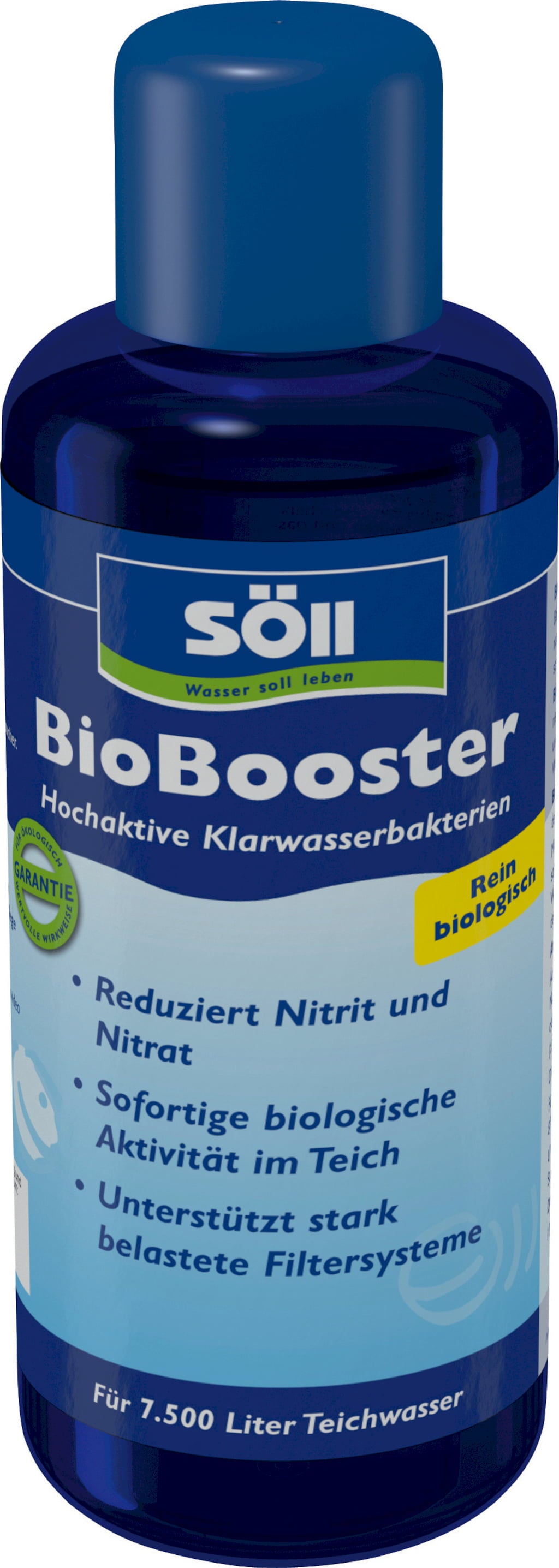 BioBooster by Söll is a formulation that rapidly stabilises the biological composition of pond water with the help of highly effective bacterial cultures. It not only breaks down organic turbidity but also inorganic compounds. It also reduces the nitrite and nitrate levels in the water over a longer period of time. The product is enriched with water clearing bacteria. These noticeably improve the water quality and support the biological self-cleaning processes of a pond.