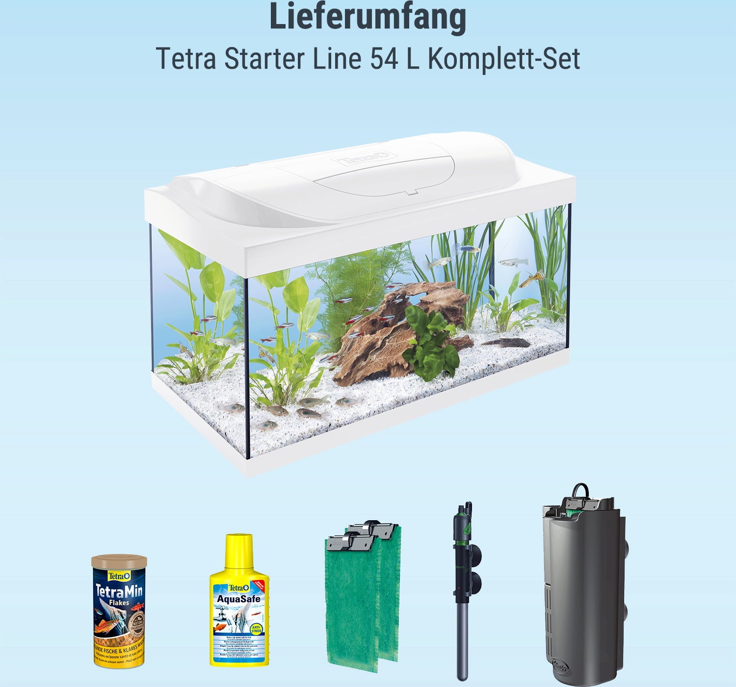 Are you about to take the exciting step into the world of underwater landscapes and looking for a carefree start? Then the Tetra Starter Line 54 L complete set in elegant white is just what you need.