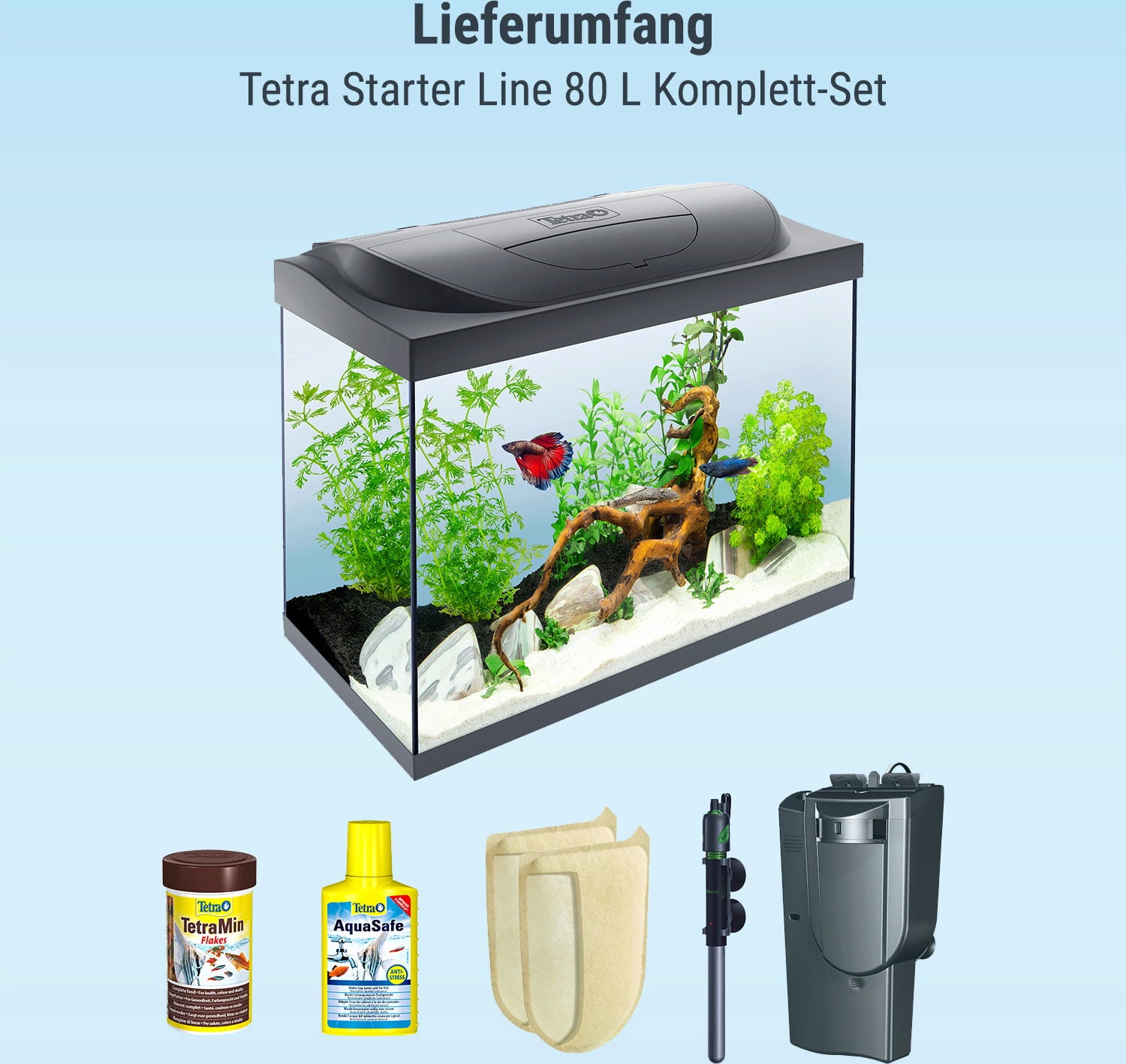 Are you about to take the exciting step into the world of underwater landscapes and looking for a carefree start? Then the Tetra Starter Line 80 L complete set is just the thing for you.
