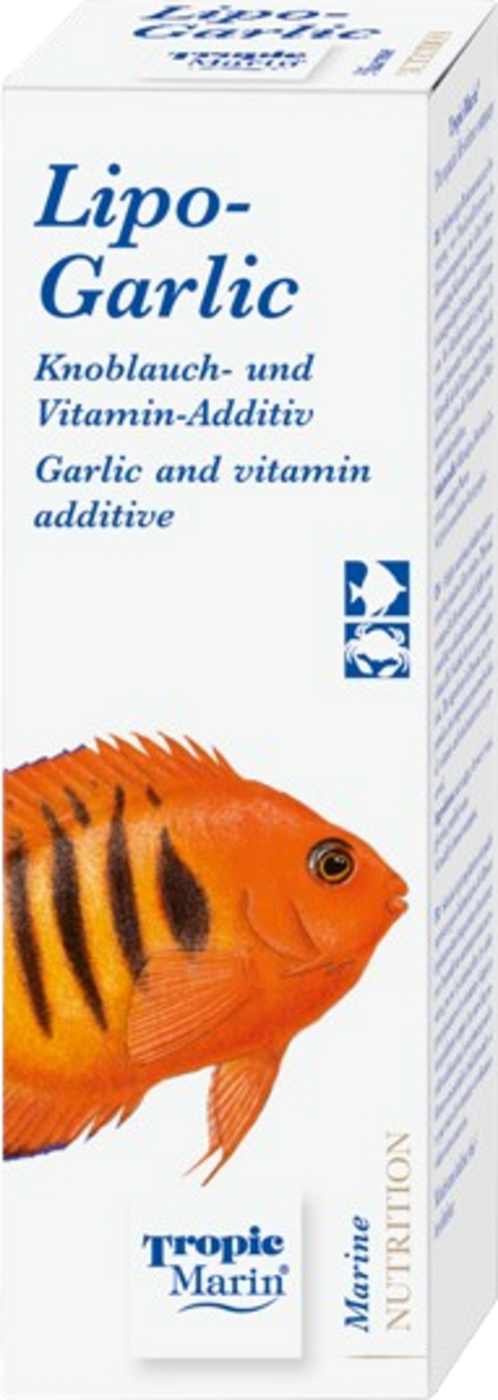Tropic Marin Lipo-Garlic is a feed supplement with garlic and vitamins for fish and crustaceans. The liquid contains selected marine oils and highly unsaturated fatty acids. It also contains carotenoids and vitamins C & E. It is liked by even shy and choosy fish thanks to the active ingredient garlic. The careful composition is taken up readily and absorbed easily. This prevents the formation of excess nitrate and phosphate in the water.